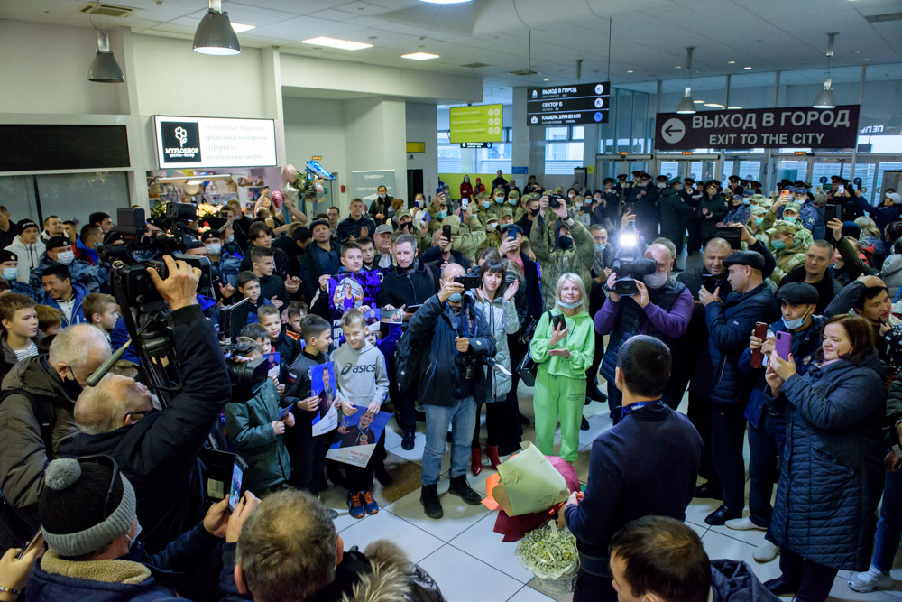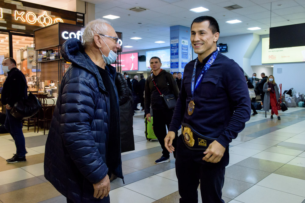 Встреча Романа Власова в аэропорту Толмачёво (Новосибирск) с чемпионата мира-2021 (13.10.2021)