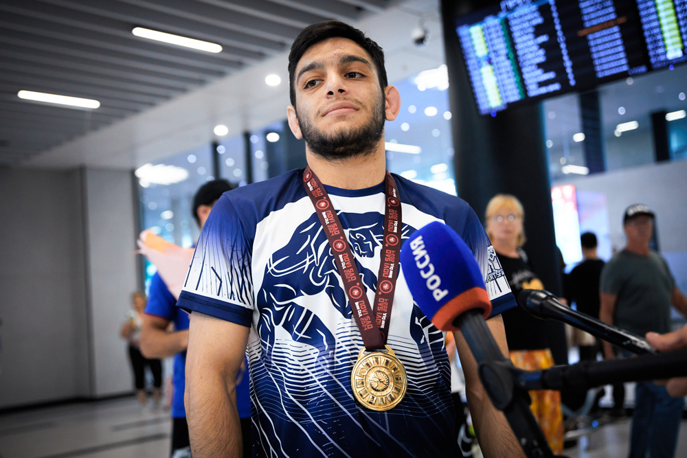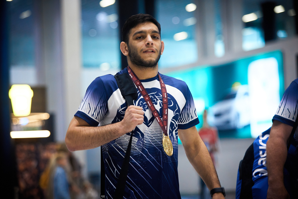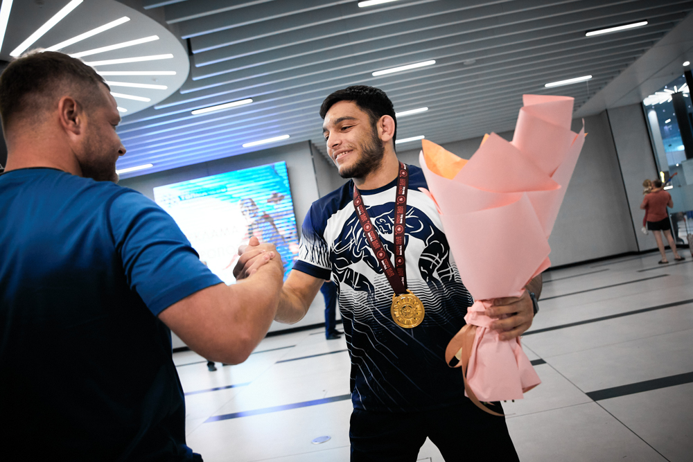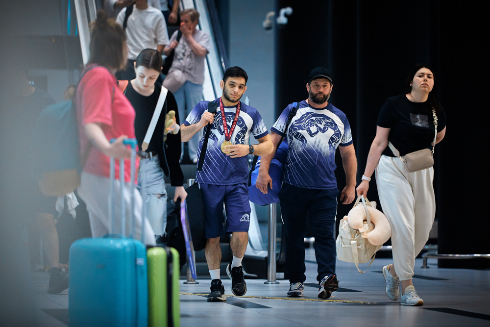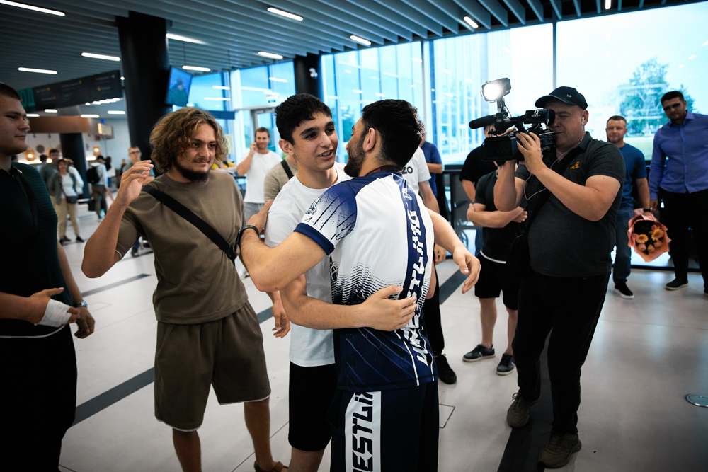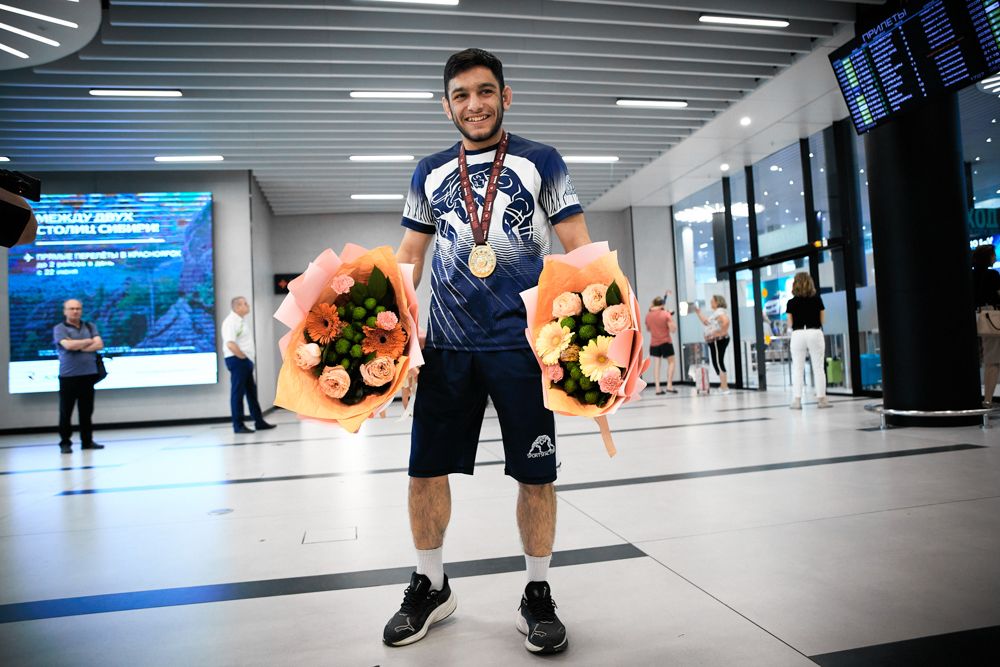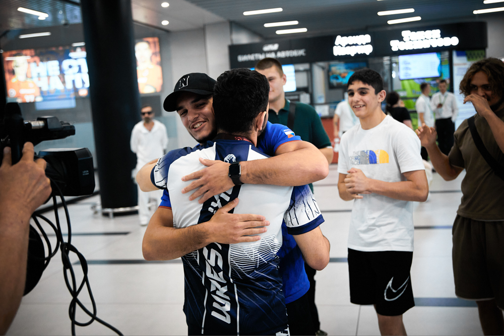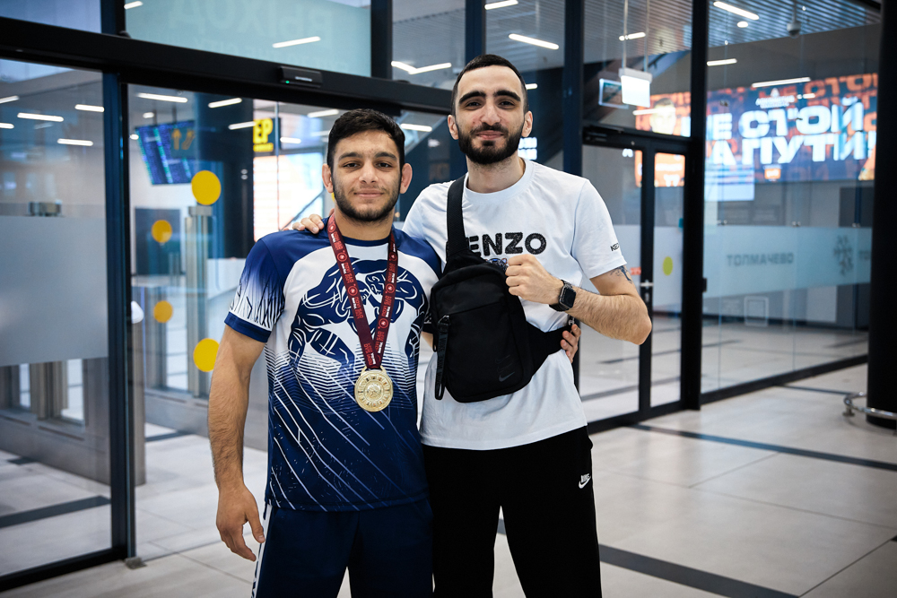 Встреча победителя первенства Европы U20, борца греко-римского стиля из клуба "СКА-"Первомаец" Грайра Оганесяна (фото Илья Федера), 9.07.2024