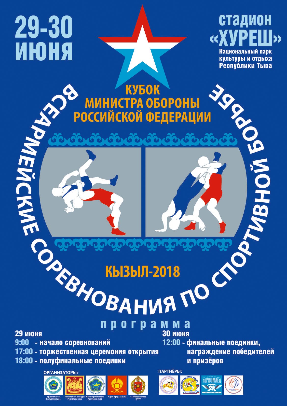 С 29 по 30 июня в Кызыле пройдут I Всеармейские соревнования по спортивной борьбе на кубок Министра обороны Российской Федерации.Организаторами турнира стали 41 общевойсковая армия, правительство Республики Тыва, а поддержку оказывают Федерации спортивной борьбы Кемеровской и Новосибирской областей, Республики Тыва, спортивный клуб «Первомаец» и «Карелин-Фонд».