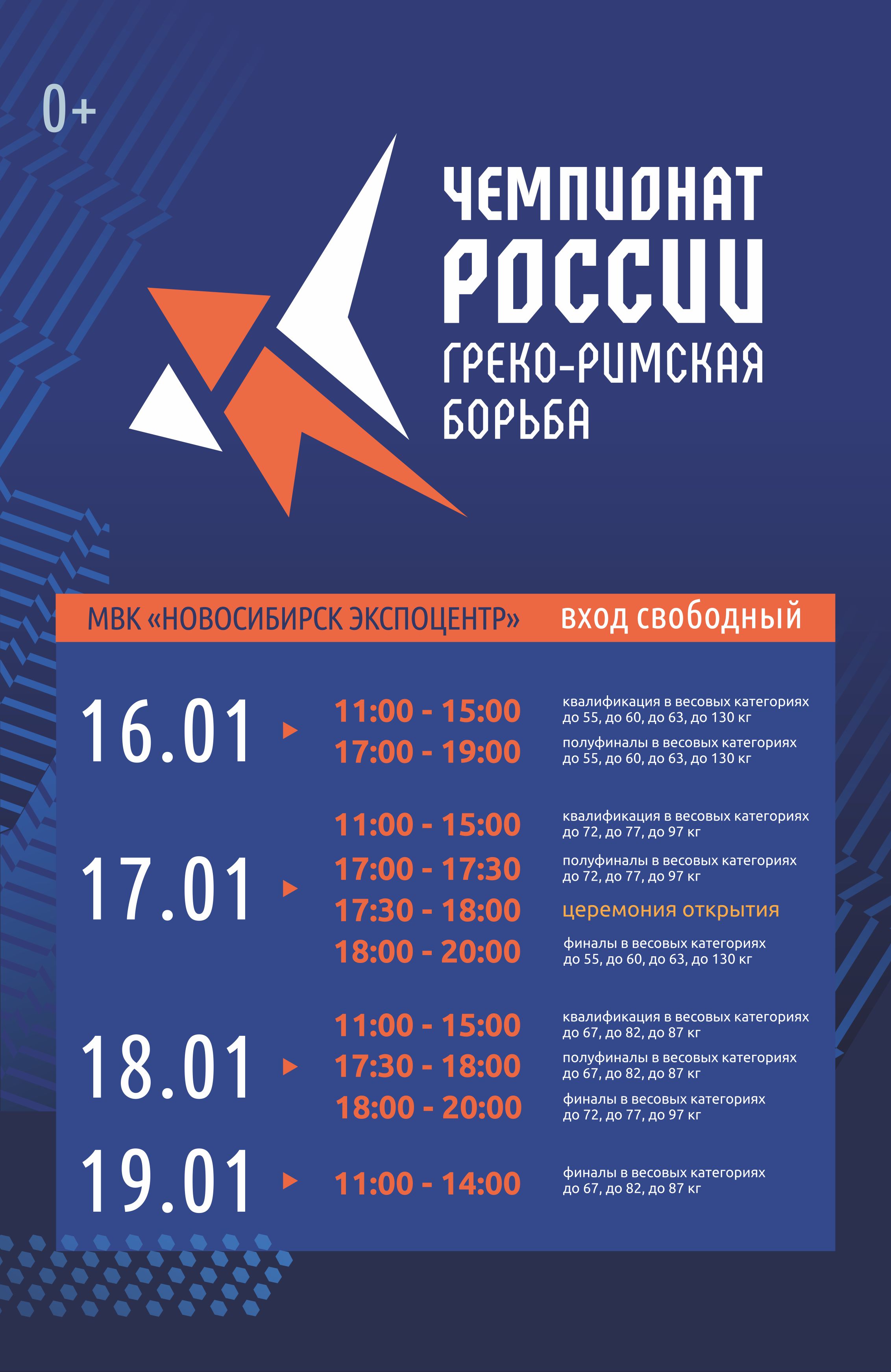 Состав сборной Новосибирской области по греко-римской борьбе для участия в чемпионате России (16-19 января, город Новосибирск, МВК "НОВОСИБИРСК ЭКСПОЦЕНТР"):55 кг Ведерников Виктор